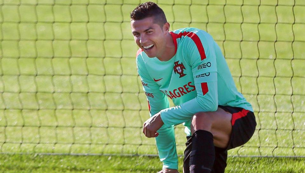 คริสเตียโน่ โรนัลโด้ กองหน้าตัวเก่งทีมชาติโปรตุเกสลงซ้อมกับเพื่อนร่วมทีมได้ตามปกติพร้อมสีหน้าร่าเริงและรอยยิ้มที่สดใส