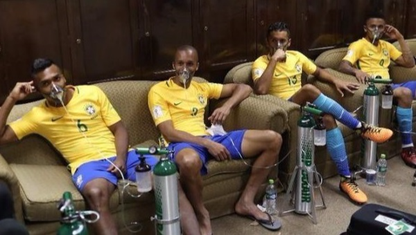 นักเตะบราซิล ต้องใช้หน้ากากอ็อกซิเจน หลังจบเกมฟุตบอลโลก 2018 รอบคัดเลือก ที่บุกเสมอ โบลิเวีย 0-0 เมื่อวันพฤหัสบดีที่ 5 ตุลาคม