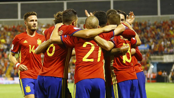 นักเตะสเปนยินดีร่วมกันหลังนำทัพกระทิงกรุยทางสู่รอบสุดท้ายของศึกฟุตบอลโลกช่วงกลางปีหน้าที่รัสเซียตามเป้าหมาย