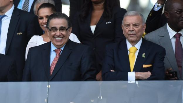 โชเซ่ มาเรีย มาริน (ขวา) อดีตประธานสหพันธ์ฟุตบอลบราซิลโดนลงโทษจำคุก 4 ปี จากข้อหาทุจริตที่เกิดขึ้นในสหพันธ์ฟุตบอลนานาชาติ หรือ ฟีฟ่า