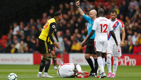 รอย ฮ็อดจ์สัน นายใหญ่คริสตัล พาเลซ ไม่พอใจ เอเตียง กาปู กองกลางวัตฟอร์ดลอยนวลในสนามหลังทำฟาวล์ใส่ วิลฟรีด ซาฮา เชื่อต้องใบแดงสถานเดียว