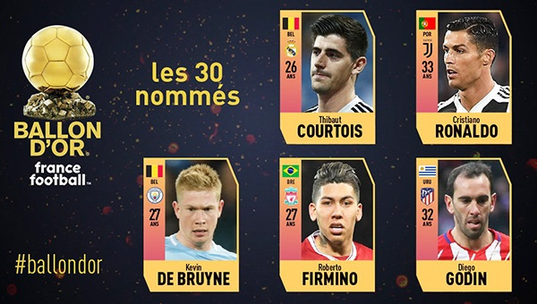 จากรายชื่อทั้งหมด 30 นักเตะที่อยู่ในลิสต์ลุ้นรางวัลบัลลงดอร์ 2018 ฟร้องซ์ ฟุตบอล ได้เผยโฉมอีก 5 นักเตะชุดสอง นำโดย โรนัลโด้ เจ้าของรางวัลนี้ 5 สมัยในปี 2008, 2013, 2014, 2016, 2017 ที่เพิ่งย้ายจาก เรอัล มาดริด ไปร่วมทีม ยูเวนตุส เมื่อช่วงซัมเมอร์ที่ผ่านมา
