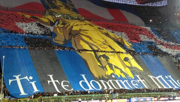 "การลงสนามในเกมมิลาโน่ ดาร์บี้, ที่ซาน ซีโร่ จะเต็มไปด้วยธงของอินเตอร์ ช่วยกันทำให้สนามเปลี่ยนเป็นสีน้ำ-ดำ"