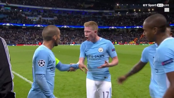 เดอ บรอยน์ พยายามเข้าไปขอคำอธิบายจากผู้ตัดสินที่ 4 แต่ถูก ซิลบา ซึ่งสวมปลอกแขนกัปตันทีม ขวางเอาไว้ ทำให้มิดฟิลด์เบลเยียมไม่พอใจ และตะโกนลั่นขอเข้าไปคุยกับผู้ตัดสิน