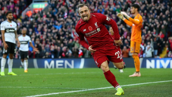 ครึ่งหลัง หงส์แดง ยิงฝัง 2-0 นาที 53 แอนดรูว์ โรเบิร์ตสัน ครอสจากฝั่งซ้ายให้ ชากิรี่ เอี้ยวตัวแปเท้าซ้ายเข้าไปง่ายๆ