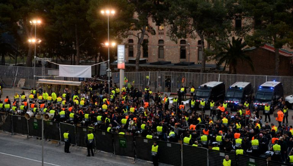 แฟนบอล 6 รายโดนเจ้าหน้าที่ตำรวจจับกุมตัวก่อนเกม ยูฟ่า แชมเปี้ยนส์ ลีก ระหว่าง บาร์เซโลน่า กับ โอลิมปิก ลียง