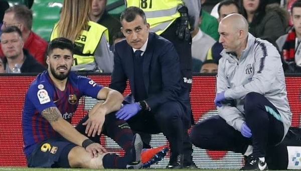 ดาวยิงทีมชาติอุรุกวัยได้รับบาดเจ็บข้อเท้าขวาจากเกมที่ทีมบุกเอาชนะ เรอัล เบติส 4-1 เมื่อคืนวันอาทิตย์ที่ผ่านมา ซึ่งในตอนแรก "เจ้าบุญทุ่ม" กังวลว่านักเตะอาจจะพักรักษาตัวนานและจะพลาดการบุกเยือน แมนเชสเตอร์ ยูไนเต็ด ในเกมนัดแรกของรอบ 8 ทีมสุดท้ายศึกยูฟ่า แชมเปี้ยนส์ ลีกที่โอลด์ แทรฟฟอร์ด
