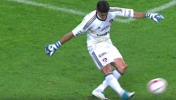 จังหวะดังกล่าวเป็นจังหวะต่อเนื่องที่เขาเพิ่งเซฟลูกยิงของ หลุยส์ โรดรีเกซ กองกลางของสโมสรติเกรส ก่อนจะเอาบอลลงกับพื้นแล้วหวดยาวขึ้นไป
