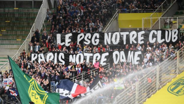 ทั้งป้ายผ้าดังกล่าวมีข้อความว่า "Le PSG Notre club" และ  "Paris Notre dame"