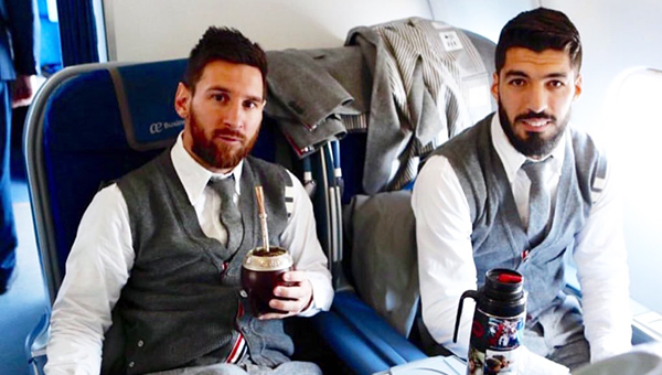 ลีโอเนล เมสซี่ กับ หลุยส์ ซัวเรซ สองกองหน้าดาวดัง นำทัพ บาร์เซโลน่า สวมสูทหล่อเต็มขั้นขึ้นเครื่องมุ่งสู่เมืองลิเวอร์พูล ตั้งแต่ช่วงเช้าวันจันทร์