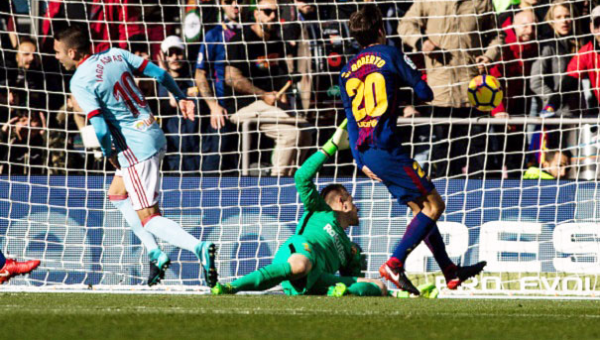 กลับกลายเป็น เซลต้า ตามตีเสมอ 2-2 ได้อีกในนาที 70 ยาโก้ อัสปาส สลัดหนี อูมติตี้ ขึ้นทางขวา กระชากถึงสุดเส้นหลังแล้วผ่านเข้ากลางให้ มักซี่ โกเมซ บรรจงจับแล้วซัดด้วยขวาเน้นๆ ผ่าน แทร์ ชเตเก้น ซุกก้นตาข่าย