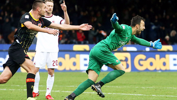 อัลแบร์โต้ บรินโญลี่ ผู้รักษาประตูทีมบ๊วย เบเนเวนโต้ สร้างชื่อโหม่งประตูตีเสมอ เอซี มิลาน ในช่วงทดเจ็บ 2-2 เป็นแต้มแรกของทีม พร้อมดับฝัน กัตตูโซ่