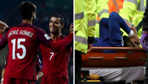คริสเตียโน่ โรนัลโด้ ดาวยิงของ ยูเวนตุส ร่วมส่งกำลังใจให้กับ อันเดร โกเมส มิดฟิลด์ของ เอฟเวอร์ตัน หลังจากที่ได้รับบาดเจ็บหนัก