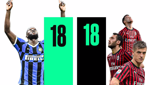 โรเมลู ลูกากู ยิงประตูให้ อินเตอร์ มิลาน 18 ประตู เท่ากับทีมคู่ปรับ เอซี มิลาน ทั้งทีมยิงได้ในฤดูกาลนี้