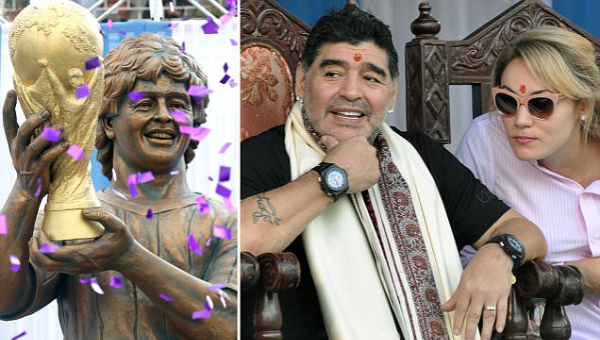 มาราโดน่า เดินทางพร้อมกับแฟนสาวไปร่วมเปิดตัวรูปปั้นตัวเองซึ่งมีขึ้นที่เมืองกอลกาต้า ประเทศอินเดีย พร้อมเตรียมลงแข่งเกมการกุศลพบกับทีมของ ซูราฟ กานกูลี่ อดีตกัปตันทีมชาติอินเดียในวันอังคารที่ 12 ธ.ค. นี้