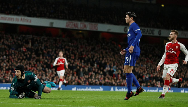 อัลบาโร่ โมราต้า ศูนย์หน้าทีมชาติสเปนของ ‘สิงห์บลูส์’ มีโอกาสทองอยู่หลายจังหวะที่จะสามารถเบิกสกอร์ให้กับตนเองได้แต่กลับทำไม่ได้ทั้งยิงหลุดกรอบ เข้าไม่ถึงบอลหรือยิงติดเซฟ ปีเตอร์ เช็ก  นายทวาร ‘ปืนใหญ่’