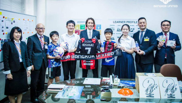 ที่โรงเรียนสมาคมไทย-ญี่ปุ่น ฮาจิเมะ โฮโซไก กองกลางชาวญี่ปุ่นของสโมสรทรู แบงค็อก ยูไนเต็ด ร่วมกับคุณทาคายูกิ คุชิดะ บริษัท โอซูก้า นิวทราซูติคอล (ประเทศไทย) จำกัด ผู้ผลิตโพคารี่สเวท เครื่องดื่มเฮลท์ตี้ดริ๊งก์คุณภาพมาตรฐานญี่ปุ่น และคุณโนริโอะ ฮิกาชิดะ บริษัท นิจิบัน (ประเทศไทย) จำกัด ผู้ผลิตเทปกาวชั้นนำของประเทศญี่ปุ่น ได้เดินทางไปบริจาคลูกฟุตบอลจำนวน 100 ลูก ให้กับโรงเรียนสมาคมไทย-ญี่ปุ่น (ถนนพระราม 9) ซึ่งมีนักเรียนประมาณ 2,200 คน เพื่อส่งเสริมให้เยาวชนสนใจกีฬาประเภทฟุตบอลมากขึ้น รวมถึงให้เยาวชนได้มีลูกฟุตบอลฝึกซ้อมและออกกำลังกายเพื่อสุขภาพ