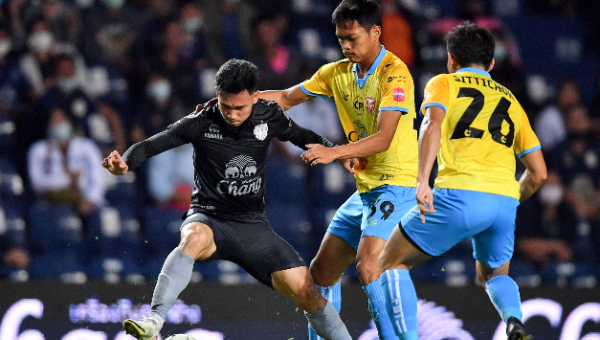 นาทีที่ 83 บุรีรัมย์ ยูไนเต็ด เบาเกมลง และพยายามเคาะบอลกันไปมาก่อนที่บอลจะมาถึง นฤบดินทร์ วีรวัฒโนดม ได้แต่งบอลหนึ่งจังหวะแล้วซัดจากระยะไกลหน้าเขตโทษบอลพุ่งเหินข้ามคานออกไป