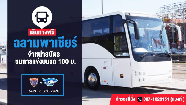 ทัพ "ฉลามพลังเพลิง" พีทีที บลูเวฟ ชลบุรี เอาใจแฟนฟุตซอล และ พี่น้องชาว จ.ชลบุรี ที่สนใจ เดินทางมาร่วมชม และ เชียร์ การแข่งขัน ศึก ไทยลีก 2020 เกมบิ๊กแมตช์ ที่จะพบกับ การท่าเรือ เอเอสเอ็ม อาทิตย์ที่ 13 ธ.ค.นี้ ด้วยการจัดรถบัส รับ-ส่ง แฟนๆฟรี จำนวน 1 คัน ออกเดินทางจาก หน้าสนาม พีทีที บลูเวฟ อารีน่า จ.ชลบุรี มุ่งหน้าสู่ สนาม บางกอก อารีน่า กรุงเทพมหานคร