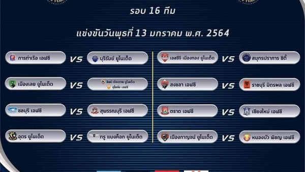 ผลการจับสลากประกบคู่ฟุตบอลช้าง เอฟเอคัพ รอบ 16 ทีม มีดังนี้