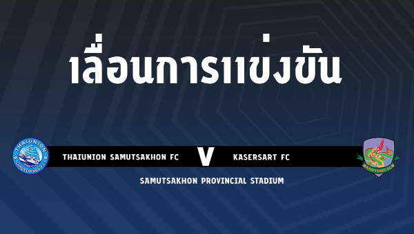 ไทยลีก ประกาศเลื่อนแข่งขัน คู่ระหว่าง ไทยยูเนี่ยน สมุทรสาครฯ พบ เกษตรศาสตร์