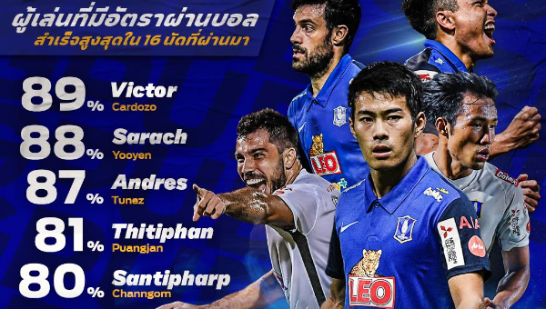 บีจี ปทุม ยูไนเต็ด เผยสถิติผู้เล่นที่อัตราการผ่านบอลสำเร็จสูงสุดใน 16 นัดที่ผ่านมา