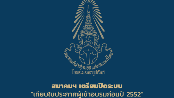 ในการนี้ ทางสมาคมฯ มีความยินดีที่จะปรับฐานข้อมูลและเทียบสถานะใบประกาศนียบัตรวิชาชีพให้แก่ผู้ฝึกสอน โดยขอความร่วมมือในการกรอกข้อมูลปัจจุบัน เพื่อเทียบสถานะ และขึ้นทะเบียนในระบบฐานข้อมูลของสมาพันธ์ฟุตบอลแห่งเอเชีย (AFC) ต่อไป