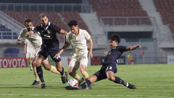 นาทีที่ 20 นฤบดินทร์ วีรวัฒโนดม กัปตันทีม ได้บอลทางริมเส้นด้านขวา ก่อนจะลากบอลตัดเข้ากลางมาที่หน้าเขตโทษ แล้วจิ้มบอลทะลุช่องต่อให้ ไมคอน มาร์เกวซ ได้จังหวะยิงบอลเร็ว ทว่ายิงหักข้อมากไป ทำให้บอลไม่ตรงกรอบประตู