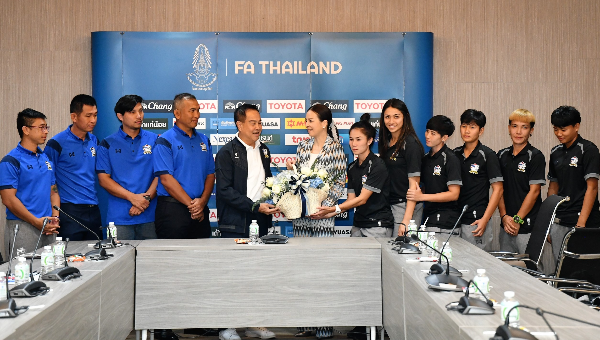 พล.ต.อ. ดร.สมยศ พุ่มพันธุ์ม่วง นายกสมาคมกีฬาฟุตบอลแห่งประเทศไทยฯ กล่าวว่า“สวัสดีน้องๆ ทุกคนและขอขอบคุณที่มาอวยพรปีใหม่ และมาลาเดินทางไปจีนเพื่อไปทำหน้าที่เพื่อชาติ น้องๆ ทุกคนถือว่าได้รับเกียรติอันสูงสุดสำหรับนักกีฬาฟุตบอลหญิงทีมชาติไทย ซึ่งหลายๆ คนอยากเข้ามาทำหน้าที่ตรงนี้แต่ไม่มีโอกาส ถือว่าพวกเราเป็นผู้ที่ถูกคัดเลือกมาดีที่สุด เพราะฉะนั้นเมื่อได้รับหน้าที่ตรงนี้ ก็อยากให้เราทำให้เต็มที่ให้สมกับคนไทยทั้งชาติตั้งความหวัง ซึ่งตัวผมเองได้ติดตามดูผลงานของทุกคนในทีมมาโดยตลอด เชื่อว่าทุกคนมีศักยภาพที่ดีกว่าเดิม ทางสมาคมฯ ก็พร้อมที่จะให้การสนับสนุนในทุกๆ ด้านอย่างเต็มที่”