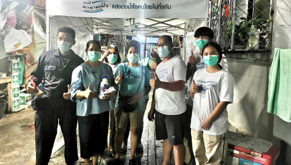 ทีมอาสากล้าใหม่ มูลนิธิมาดามแป้ง ลงพื้นที่คลองเตยและบ่อนไก่พัฒนา สร้างซุ้มพ่นน้ำยาฆ่าเชื้อโควิด-19 ในจุดเสี่ยงของแต่ละชุมชน
