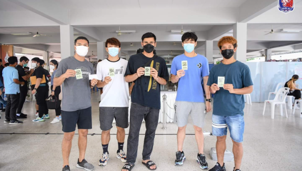 แข้ง "สิงห์เจ้าท่า" เข้ารับการฉีดวัคซีนป้องกันโควิด-19 ณ สถาบันบําราศนราดูร จังหวัดนนทบุรี