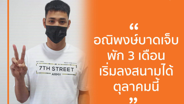 "อณิพงษ์ กิจคาม" ได้รับบาดเจ็บระหว่างฝึกซ้อมไปก่อนหน้านี้ ขณะนี้ผลตรวจ MRI ออกมาเป็นที่เรียบร้อย ปรากฎว่า เจ้าตัวได้รับบาดเจ็บบริเวณหัวเข่า เนื่องจากเอ็นไขว้หน้าฉีกขาด พักทำการรักษาเป็นเวลา 3 เดือน คาดว่าจะกลับมาฟิตซ้อม พร้อมลงสนามได้ในช่วงปลายเดือนตุลาคมนี้
