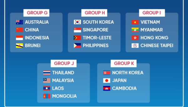 และเพื่อรักษาสมดุลของแต่ละกลุ่ม จะมีทีมที่เป็นเจ้าภาพของกลุ่ม กับทีมที่มาจากโถที่ 1 ที่จะไม่ถูกนำมาจับฉลากในครั้งนี้ เท่ากับว่าทีมที่มีโอกาสจะถูกสุ่มไปอยู่ร่วมกลุ่ม K กับญี่ปุ่นและกัมพูชา จะประกอบไปด้วย