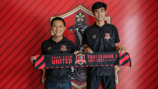 “บิ๊กต้อม” วัฒนา ช่างเหลา ประธานสโมสรขอนแก่น ยูไนเต็ด ร่วมถ่ายภาพเปิดตัวกับ 2 นักเตะดาวรุ่งจากอะคาเดมี่ศูนย์ฝึกฟุตบอลขอนแก่น ยูไนเต็ด เซ็นสัญญาอาชีพขึ้นชุดใหญ่