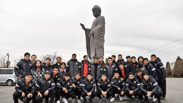 ขุนพลนักเตะทีมเอสซีจี เมืองทอง ยูไนเต็ด เดินทางเข้าสักการะพระใหญ่ ระหว่างทางเข้าเมืองคาชิว่า