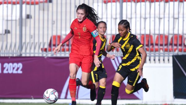 ที่สนาม ไฟซอล อัล ฮุสเซนี ประเทศปาเลสไตน์ การแข่งขันฟุตบอลหญิงชิงแชมป์เอเชีย รอบคัดเลือก กลุ่ม เอช มาเลเซีย พบกับ ไทย