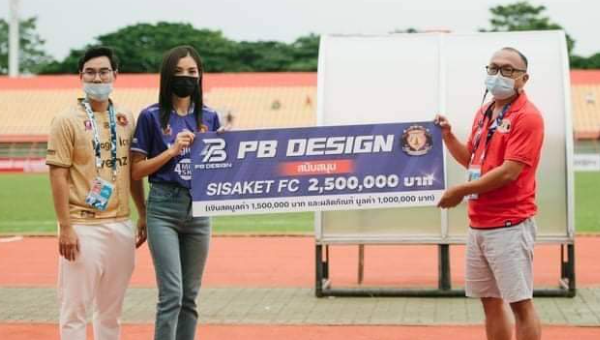 PB DESIGN ที่ได้มอบเงินและผลิตภัณฑ์สนับสนุนสโมสรศรีสะเกษ เอฟซี มูลค่ารวม 2.5 ล้าน บาท