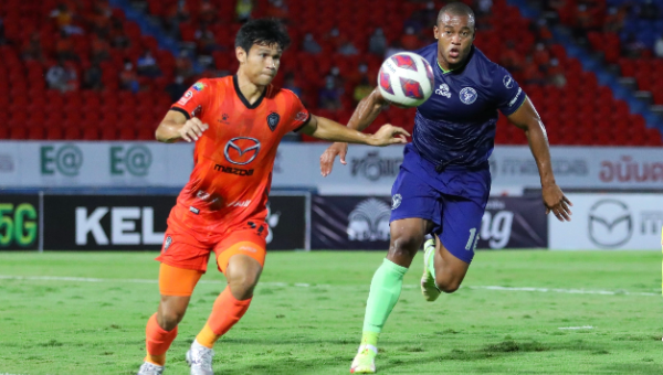 นาที 9 ทีมเยือนได้ทักทายก่อนจากจังหวะยิงด้วยขวาในกรอบเขตโทษของ เอลิอันโดร กอนซากา แต่บอลไปตรงตัว พิศาล ดอกไม้แก้ว