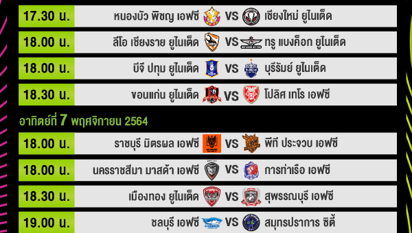 โปรแกรม ฟุตบอล รีโว่ ไทย ลีก มีดังนี้