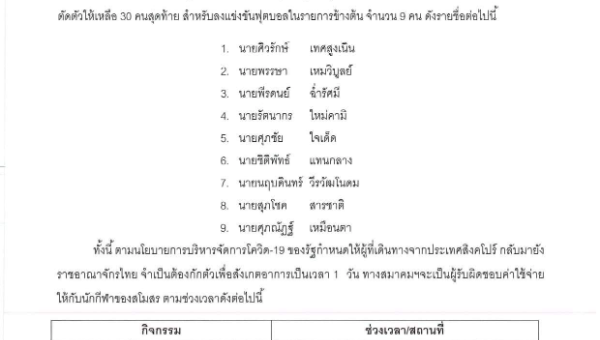 ในการนี้ นักกีฬาที่มีรายชื่อถูกเรียกไปจะอยู่ในรายชื่อลงทะเบียนขั้นแรก 69 คน เพื่อพิจารณาตัดตัวให้เหลือ 30 คนสุดท้าย สำหรับลงแข่งขันในฟุตบอลรายการข้างต้น