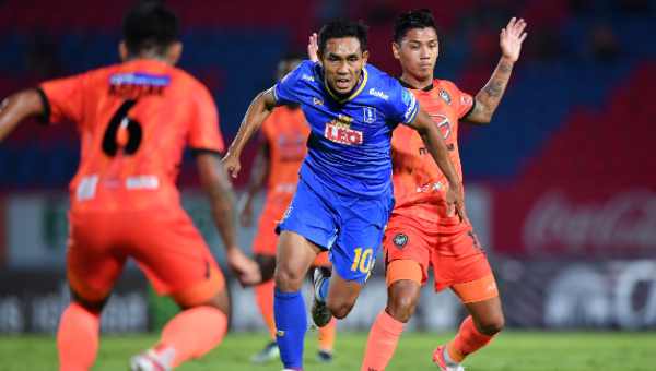 นาทีที่ 31 เจ้าถิ่น นครราชสีมา มาสด้า ได้ลุ้นอีกครั้งจากจังหวะที่ อมาดู อ็อตตาร่า เปิดให้ เดนนิส วิลลานูเอวา โหม่งข้ามคาน นาทีที่ 36 ทัพ "เดอะ แรบบิท" พลาดได้ประตูขึ้นนำจากจังหวะที่ สันติภาพ จันทร์หง่อม เปิดให้ ธีรศิลป์ แดงดา ได้ยิงเน้น ๆ แต่บอลเข้ามือผู้รักษาประตูเจ้าถิ่น