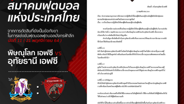 อุทัยธานี เอฟซี ยื่นเรื่องถึงสมาคมฟุตบอลแห่งประเทศไทยจากการตัดสินที่ยังเป็นข้อกังขาในเกมบุกเยือนพิษณุโลก เอฟซี