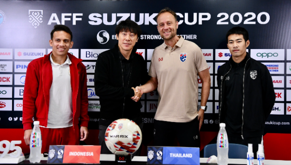 เอเอฟเอฟหรือสหพันธ์ฟุตบอลอาเซียน จัดงานแถลงข่าวก่อนการแข่งขันฟุตบอล เอเอฟเอฟ ซูซูกิ คัพ 2020 รอบชิงชนะเลิศ เลกแรก คู่ระหว่าง ทีมชาติไทย กับ ทีมชาติอินโดนีเซีย