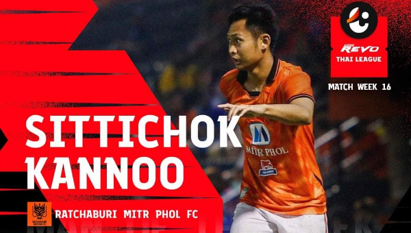 สิทธิโชค กันหนู กองหน้าของราชบุรี มิตรผล เอฟซี ได้รับการโหวตให้เป็น Man of the Week สัปดาห์ที่ 16 ของศึกรีโว่ ไทยลีก 2021/22 หลังช่วยทีมเสมอ บีจี ปทุม ยูไนเต็ด 1-1 จากผลงาน
