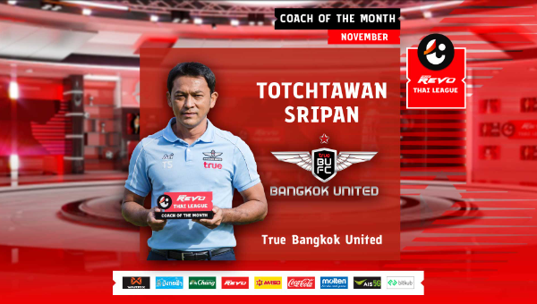ส่วนรางวัลผู้ฝึกสอนยอดเยี่ยม Revo Thai League Coach of the Month ประจำเดือนพฤศจิกายน ตกเป็นของ ธชตวัน ศรีปาน หัวหน้าผู้ฝึกสอนของทรู แบงค็อก ยูไนเต็ด ที่พาทีมชนะ 4 จาก 5 เกมในเดือนดังกล่าว