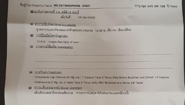 ล่าสุด "บิ๊กบอล" ศศิศ สิงโตห์ทอง โพสต์ลงเฟสบุ๊คส่วนตัว หลังพาแข้งดาวรุ่งไปตรวจที่โรงพยาบาล ปรากฏว่า เจ้าตัวมีอาการเส้นเสียง และฝาปิดกล่องเสียงบวม รวมถึงมีอาการเสียงเปลี่ยน หากอาการไม่ทุเลาต้องกลับไปพบแพทย์อีกครั้ง