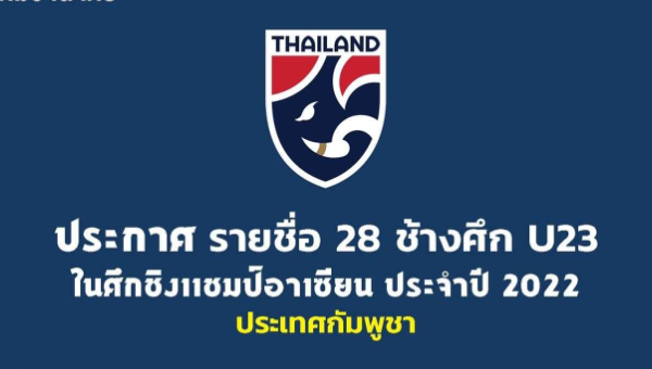 สมาคมกีฬาฟุตบอลแห่งประเทศไทย ในพระบรมราชูปถัมภ์ ประกาศรายชื่อ 28 นักฟุตบอลชายทีมชาติไทย รุ่นอายุไม่เกิน 23 ปี เพื่อเข้าร่วมการแข่งขันฟุตบอลชิงแชมป์อาเซียน รุ่นอายุไมเกิน 23 ปี 2022 ที่ประเทศ กัมพูชา ระหว่างวันที่ 14-26 กุมภาพันธ์ 2565
