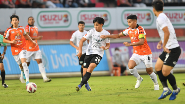 ถัดมาเป็นเกมบุกของ ชลบุรี เอฟซี บ้าง ที่ได้ครองบอลเปิดเกมรุกเข้าใส่เจ้าถิ่นบ้าง แต่ยังไม่สามารถสร้างโอกาสในการจบสกอร์ได้มากนัก ผ่าน 15 นาทีแรก สกอร์ยังเสมอกันอยู่ที่ 0-0