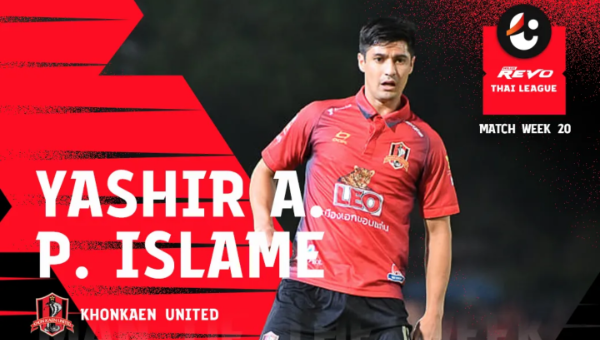 ยาเชียร์ อิสลามี ปินโต คว้า Man of the Week ไทยลีก สัปดาห์ที่ 20
