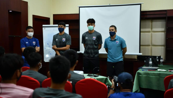 ณ สนาม อาร์มี เอฟซี ในกรุงพนมเปญ ประเทศกัมพูชา ฟุตบอลชายทีมชาติไทยชุดลุยศึกชิงแชมป์อาเซียนรุ่นอายุไม่เกิน 23 ปี ลงทำการฝึกซ้อมครั้งแรก